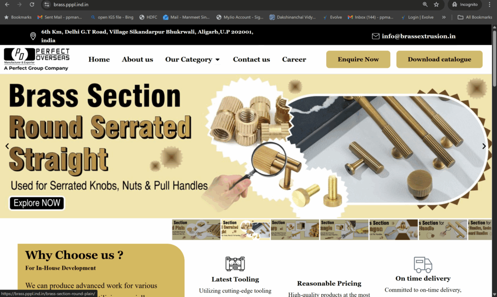 Perfect Products Pvt. Ltd. & Perfect Overseas are part of the Perfect Group, known for manufacturing premium brass and zinc hardware products with precision, quality, and trust for global suppliers.